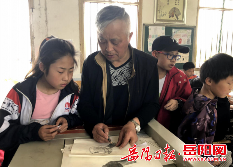2024年4月15日,“五老”志愿者刘纯教授指导黄金小学学生绘画。