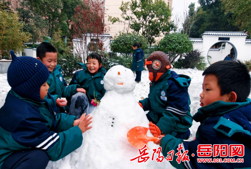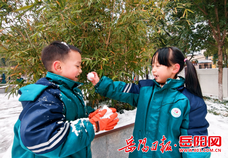 岳阳日报1月21日讯(通讯员 王琼)“下雪啦!下雪啦!”2026年第一场雪如约而至,岳阳楼区花板桥学校被皑皑白雪装点成银装素裹的童话世界。1月20日下午,一年级353班的孩子们在老师的组织下,走进学校小花园,开展了一场充满欢声笑语的玩雪活动,堆雪人、掷雪球、打雪仗、述雪人,用童真与欢笑定格初雪的美好。