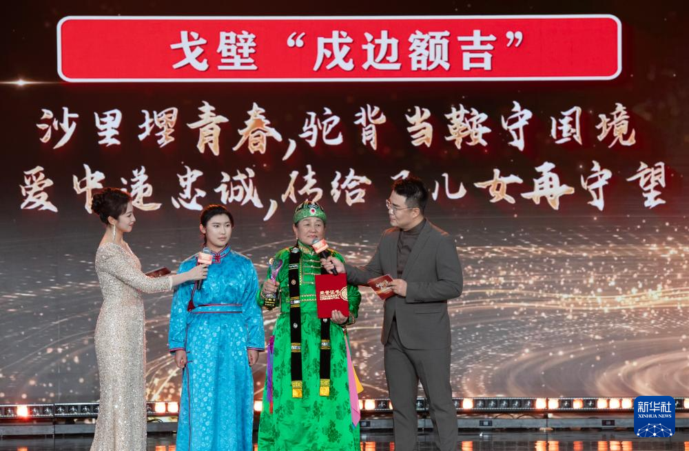 1月28日,由新华社主办的“中国网事·感动2025”公益盛典暨年度颁奖典礼在北京举行,活动揭晓“中国网事·感动2025”十大年度网络人物。这是“戈壁‘戍边额吉’”敖云其木格(右二)出席颁奖典礼。新华社记者 李安 摄