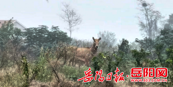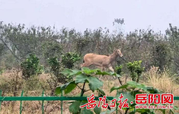 它们为何离开传统栖息地,选择在此落脚?君山区自然资源局工作人员给出了答案:这与洞庭湖季节性涨水密切相关。“每年汛期,湖区水位上升,部分麋鹿会外迁寻找安全的食物来源和栖息地。这对母子很可能就是那时‘搬迁’过来的。”它们相中的这片区域,丘陵起伏、果园连片、桑林茂密,既提供了丰富的“自助餐”,又保留了足够的隐蔽空间,堪称一个理想的“福地洞天”。