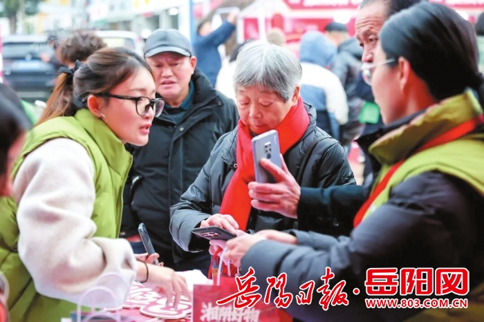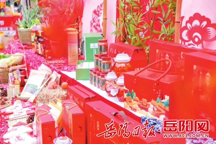 在现场,新开的社区体验店被打造成一个“湘阴风土客厅”。居民不仅能随手买到贴有溯源二维码的放心年货,还能现场试吃。