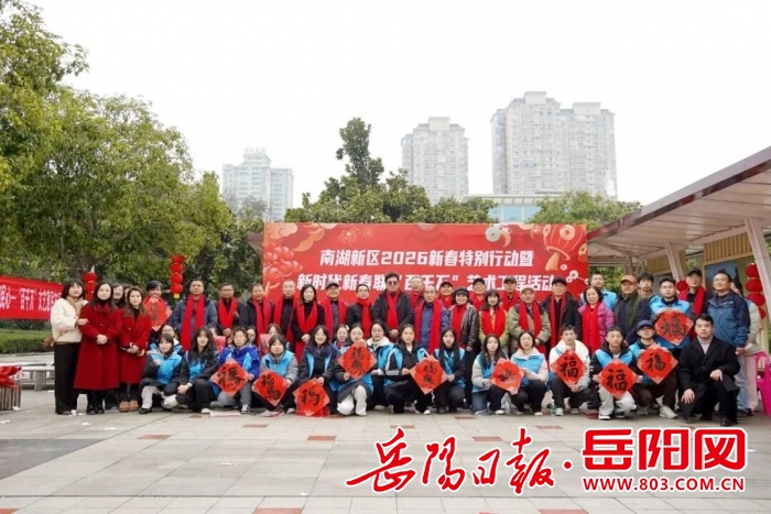 岳阳日报2月5日讯(全媒体记者 陈思炜)笔墨传情谱新篇,文艺惠民暖民心。2月4日上午,南湖广场宣讲吧暖意氤氲、墨香袭人,南湖新区“强基工程”2026年新春特别行动暨新时代春联“百千万”艺术工程温情启幕。