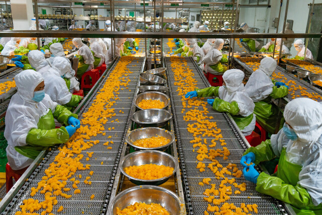 永州市冷水滩区湖南熙可食品有限公司,柑橘加工车间生产线。雷中祥 曹慧璎 摄影报道(湖南图片库)