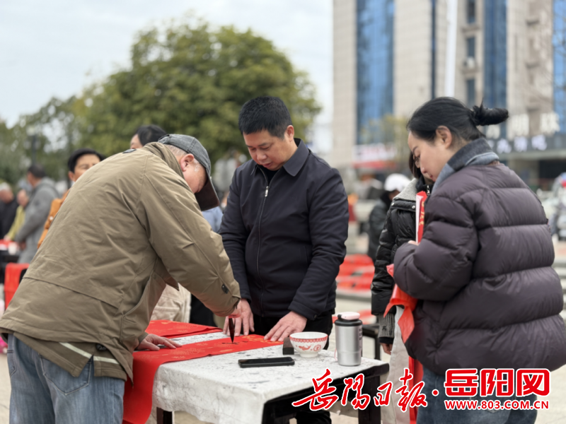 岳阳日报2月6日讯(甘洁)近日,平江县千年古镇长寿街金河广场人头攒动,热闹非凡,县老年书画协会在这里举办“墨香迎新春·福联赠万家”送春联下乡活动。