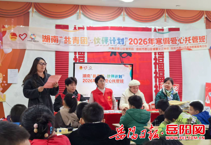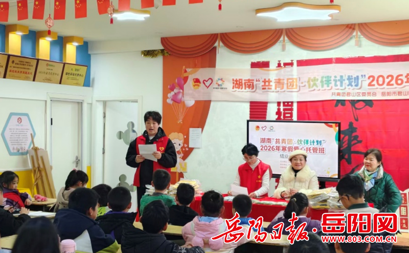 岳阳日报2月6日讯(全媒体记者 田卓灵 通讯员 高洁)历经一段充实的寒假时光,“共青团·伙伴计划”君山区2026年寒假爱心托管班结业仪式于近日温情举行。本次活动由共青团君山区委员会、岳阳市君山区科技教育服务中心、星星义工协会联合主办,君山童话托育早教中心承办,全体学员、家长代表、志愿者及工作人员齐聚一堂,共同见证这段成长之旅的圆满落幕。