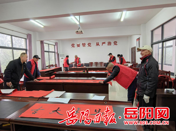 岳阳日报2月10日讯(通讯员 龙广新)新春将至,年味渐浓。为弘扬中华优秀传统文化,丰富基层群众精神文化生活,把喜庆吉祥、饱含祝福的春联送到群众家门口。2月9日,君山区许市镇洪水港社区联合许市镇诗联协会,开展免费写春联公益活动。新当选的社区“两委”班子将以此次活动为契机,用心用情为群众办实事、办好事,用实际行动践行初心使命。