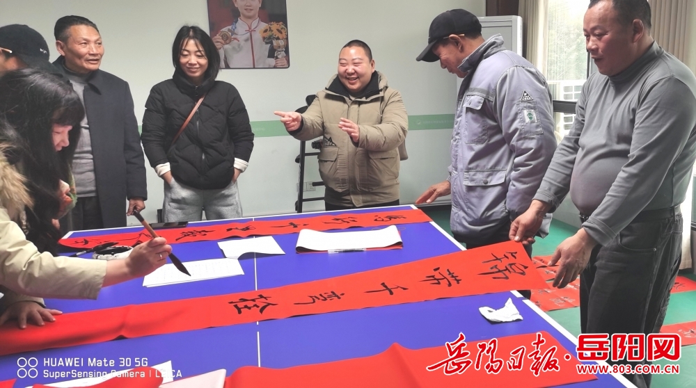 岳阳日报2月11日讯(唐仲秋 陈正刚)2月10日,岳阳楼区西塘诗联协会开展“送春联下乡”活动,为当地群众书写新春祝福,传递传统文化之美。