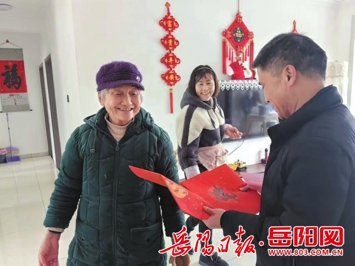 工作人员入户送春联。