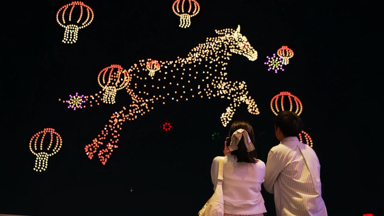 夜幕降临,后浪公园更添璀璨。无人机天幕大秀腾空而起,在空中变幻出“马年大吉”“财神到”等吉祥图案,点亮南湖夜空;非遗铁花凌空绽放,星火漫天飞舞、气势磅礴,将新春的喜庆推向高潮;篝火晚会现场载歌载舞,天灯祈福温情满满,欢声笑语交织在一起,将新春喜悦传递到每一个角落。丰富多元的业态、沉浸式的游玩体验,让传统文化的厚重、人间烟火的暖意与潮流时尚的活力在这里完美交融。
