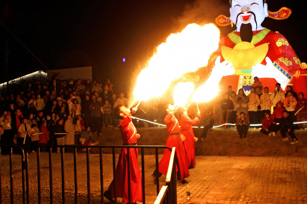 从白天到夜晚,精彩轮番上演、高潮不断。上午有迎宾礼、花神秀、旋鼓舞、敦煌飞天等国风演绎;下午锦衣卫巡游、高杆不倒翁、抛绣球招婿、丝牵偶戏等趣味十足;晚间非遗滚灯舞、吐火、火壶、火魔方等绝技轮番登场,搭配麒麟花车、古风NPC互动巡游,游客仿佛穿越古今,沉浸式感受传统民俗魅力。