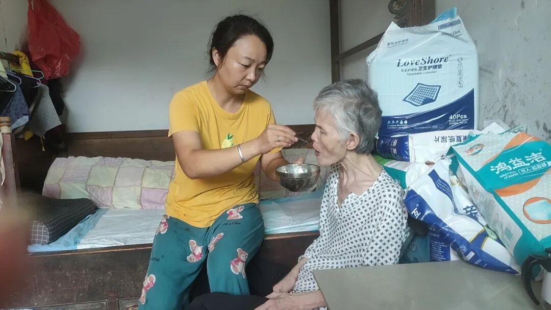 每天清晨,王霞先为婆婆穿衣、洗漱、喂药,再准备一家人的早餐;忙农活的间隙里,她不知疲惫地扶着丈夫练习走路,给婆婆翻身按摩、擦洗身体;晚上陪着儿女做功课,睡前再检查婆婆的被褥是否厚实。