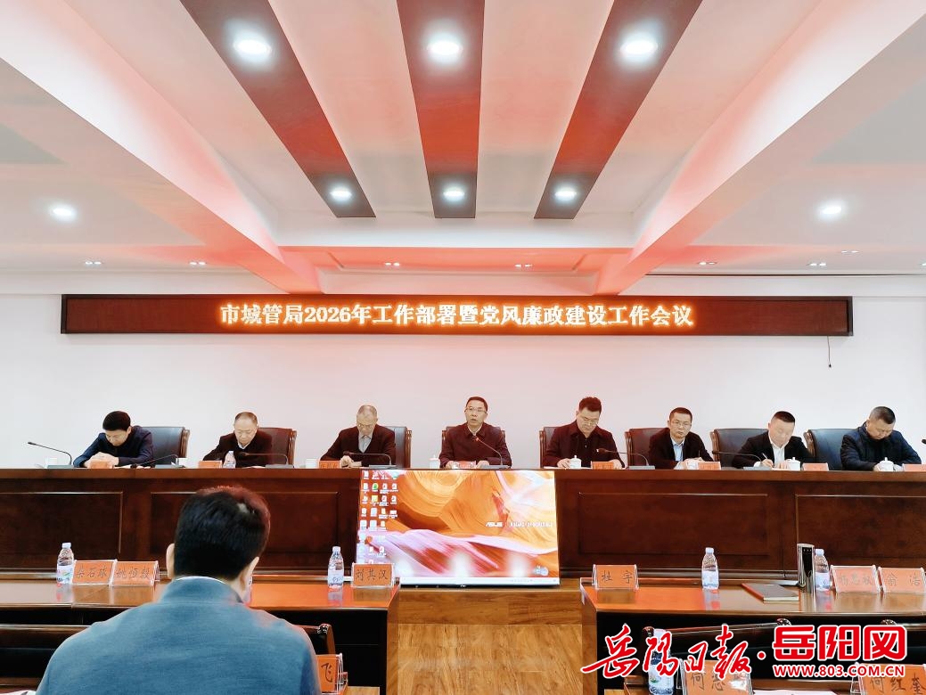 岳阳日报3月5日讯(全媒体记者 郝家勇)3月5日上午,市城管局召开2026年工作部署暨党风廉政建设工作会,深入贯彻党的二十大和二十届历次全会精神,认真落实中央经济工作会议、中央城市工作会议和全国住建工作会议精神,以及省委城市工作会议、全省住建工作会议和市委全会、市两会、市纪委全会等会议精神,全面盘点2025年工作,安排部署2026年重点任务,同心同德推进岳阳市城市管理和综合执法事业高质量发展,实现“十五五”良好开局。