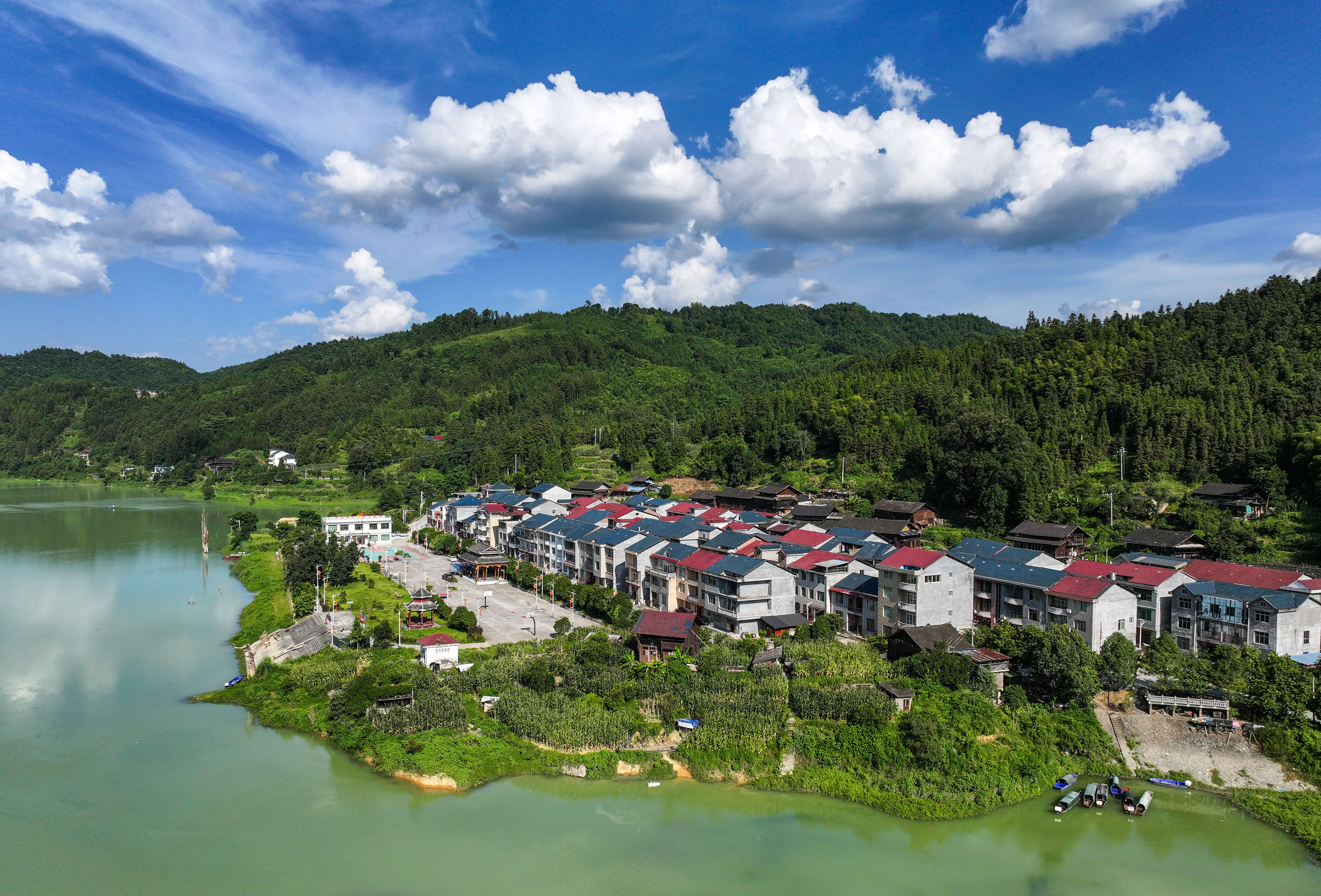 山清水秀的贵州省天柱县坌处镇清华村(2025年7月15日摄,无人机照片)。近年来,天柱县把改善农村人居环境作为推进乡村振兴的关键抓手,全力打造宜居宜业和美乡村。新华社记者 杨文斌 摄