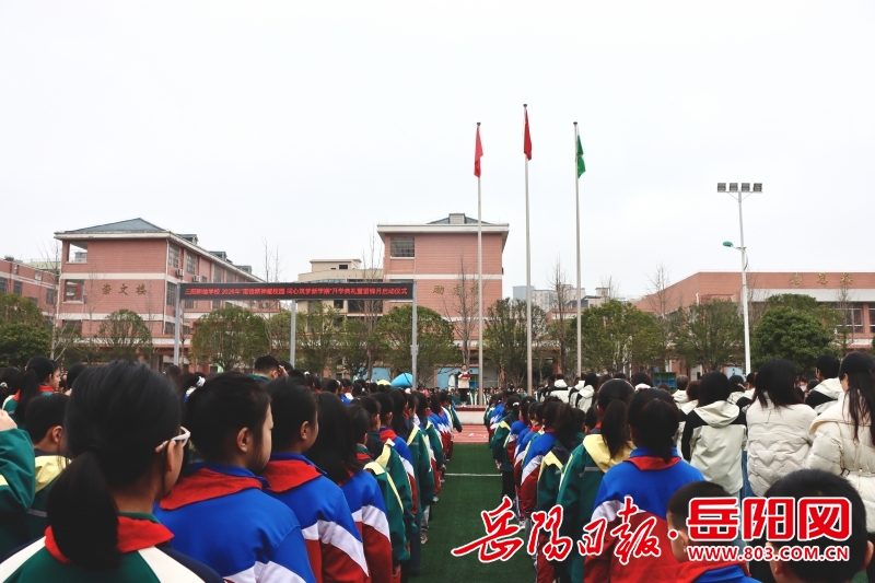 岳阳日报3月10日讯(全媒体记者 田卓灵 通讯员 余玉龙 余思思)“学习雷锋好榜样,忠于革命忠于党……”3月10日,平江县三阳明德学校隆重举行“雷锋精神耀校园,同心筑梦新学期”开学典礼暨雷锋月启动仪式,激昂的歌声回荡在校园上空。全体师生以饱满昂扬的精神状态迎接新学期,共同传承弘扬新时代雷锋精神。