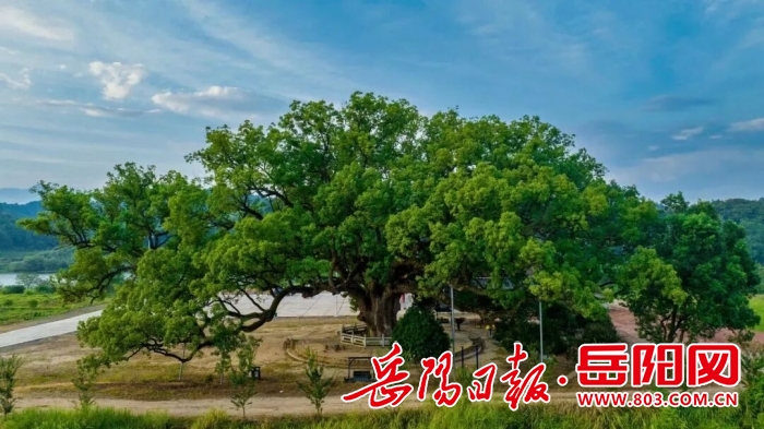 这棵位于天湖村、汨水旁的千年古樟,是平江树界的“老大哥”,树高25.3米,胸径3.18米,树冠投影面积达1600余平方米——相当于4个标准篮球场大小,需近10名壮汉才能合抱。据《平江县志》和树下碑记记载,此树历经汉、唐、宋、元、明、清六朝,距今已有2200多年。汉高祖刘邦曾封它为“渔潭大王”,宋初皇帝赐它名“桦树”,并建庙纪念。2018年,它获评“湖南省最美古樟树”;2023年,入选“全国十大最美古樟树”。