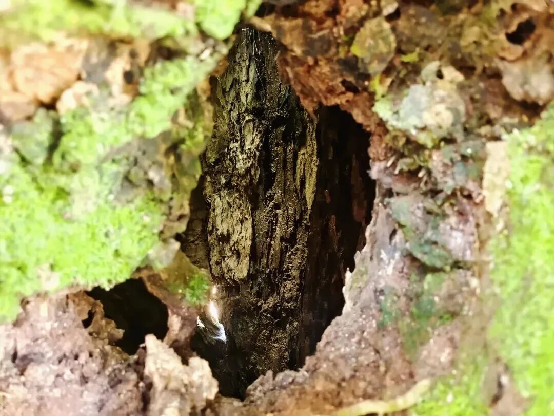 苦槠树身有巨大空洞,树皮斑驳,但厚实的树皮上长满了翠绿的槲蕨,和毛茸茸的苔藓一起,把古树装扮得别有一番诗意。村民说,槲蕨的根可入药,治牙齿痛、跌打损伤。