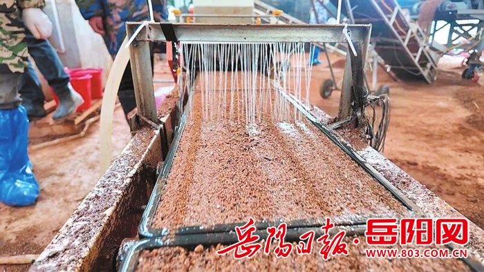 临湘市詹桥镇雁南村的全自动育秧流水线正开足马力高效运转。