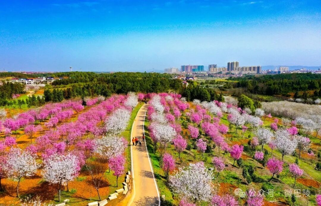 不远处的岳阳樱花园内同样游人如织。园内粉嫩的樱花次第绽放,层层叠叠缀满枝头,游客们三五成群穿行其间,踏青赏花、拍照游玩,尽享春日乡村的美好时光。