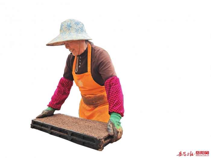 ▲屈原管理区义南村村民正在进行育秧。周洋摄
