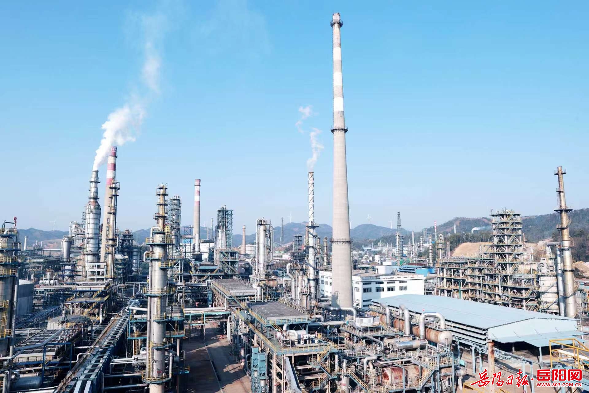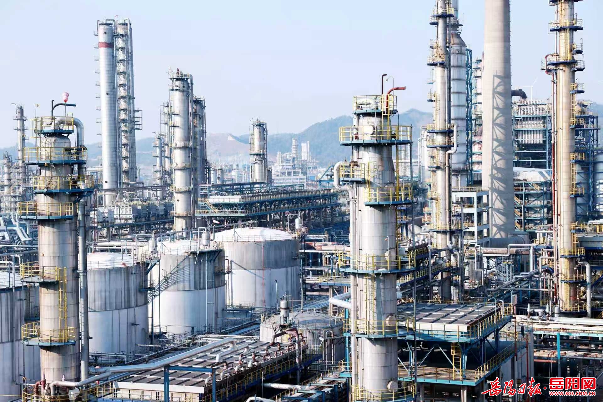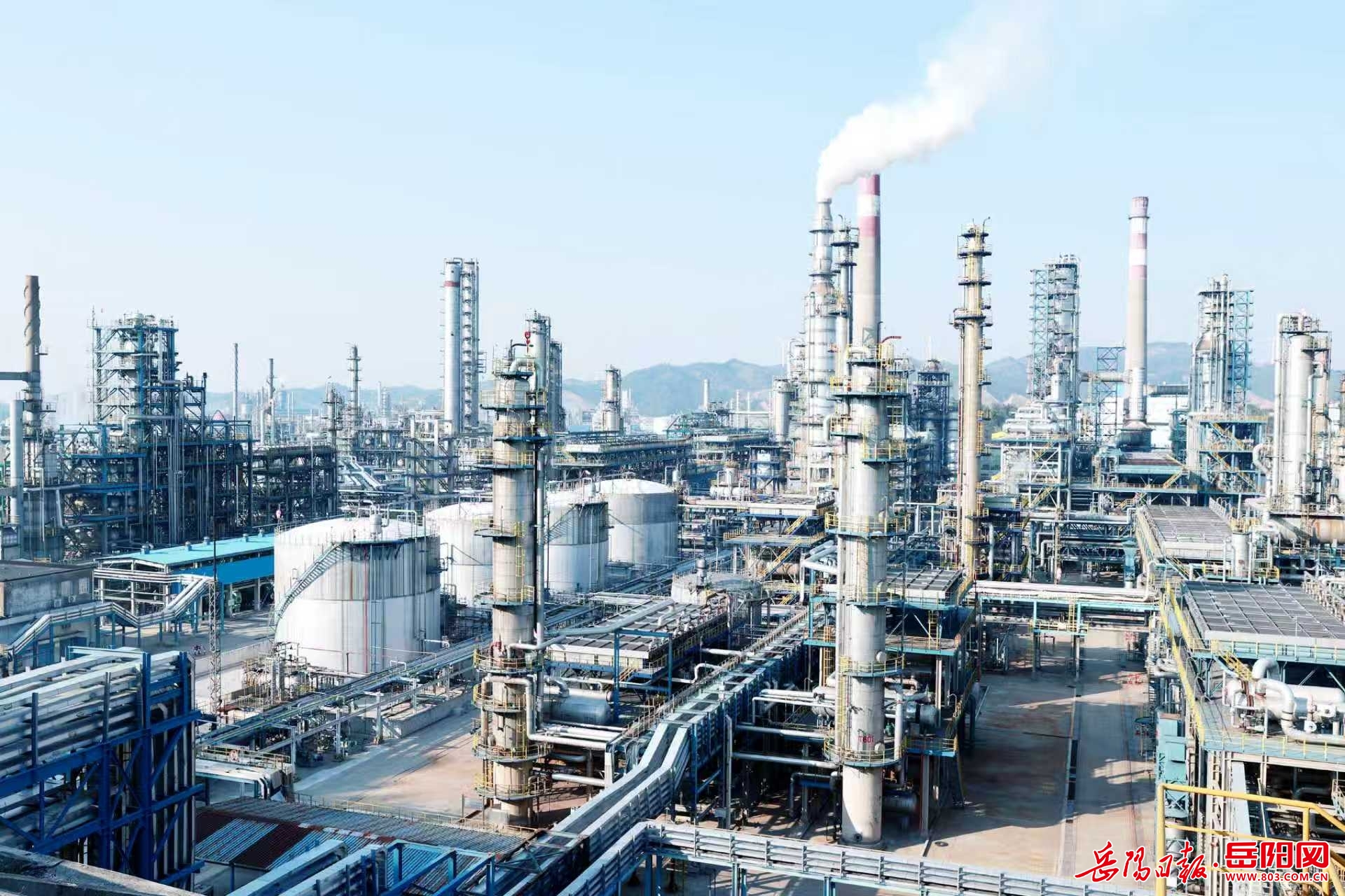 图为湖南石化平稳生产运行中的炼油产品链装置区。