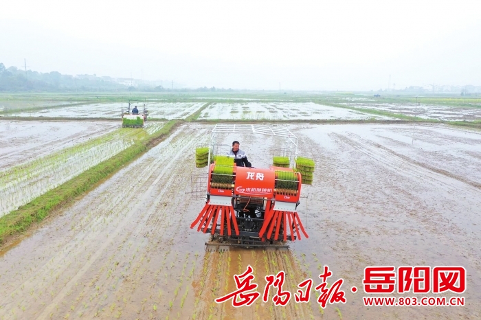 岳阳县筻口镇,插秧机有序作业,所过之处,秧苗整齐排列,横竖成线。岳阳日报全媒体记者龙瑾丁畅摄