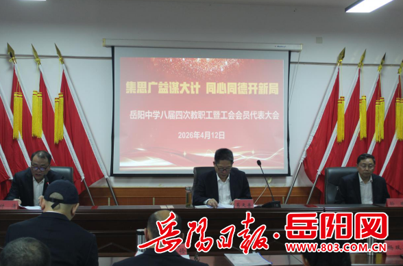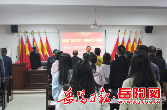 岳阳日报4月14日讯(通讯员 陈依婷 )春和景明,万象更新。4月12日,岳阳中学第八届第四次教职工暨工会会员代表大会在该校办公楼四楼大会议室隆重举行。全体正式代表及特邀代表共50余人齐聚一堂,共商学校发展大计。