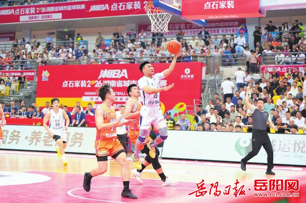 岳阳队队员突破上篮。岳阳日报全媒体记者 唐清 彭正阳 摄