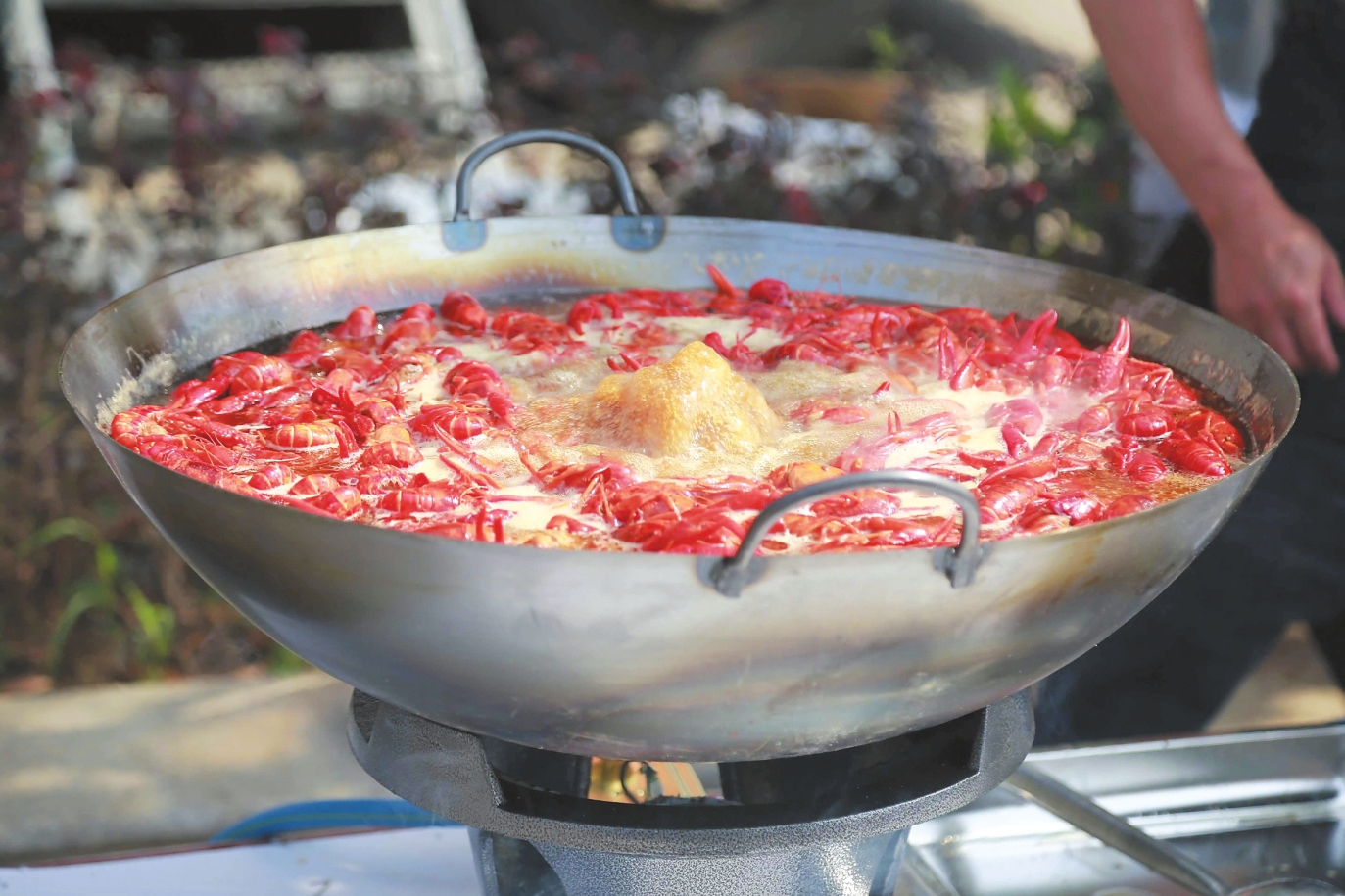 烹煮小龙虾。图源君山区委宣传部