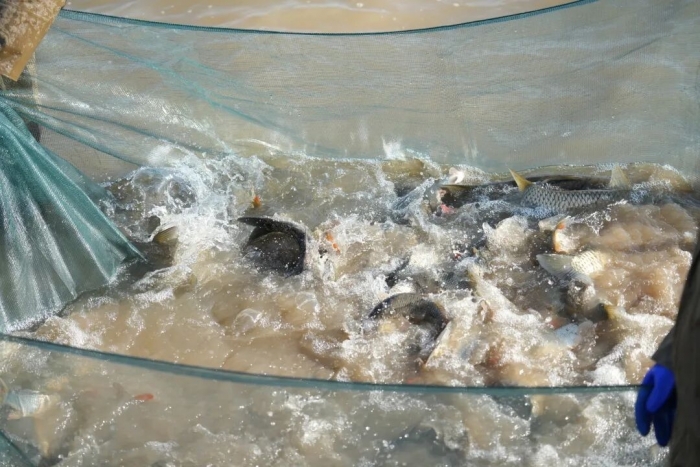 云溪区陆城镇:鱼塘丰收起鱼忙 渔民欢喜抱鱼归